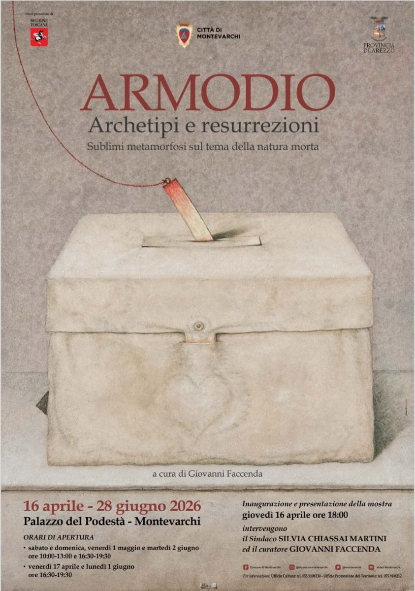 Giovedì 16 aprile, ore 18.00, in Palazzo del Podestà si inaugura la mostra di uno dei maggiori pittori viventi al mondo a cura del Prof. Giovanni Faccenda: Armodio “Archetipi e resurrezioni , sublimi metamorfosi sul tema della natura morta” a cura del Prof. Giovanni Faccenda, autorevole critico d’arte.