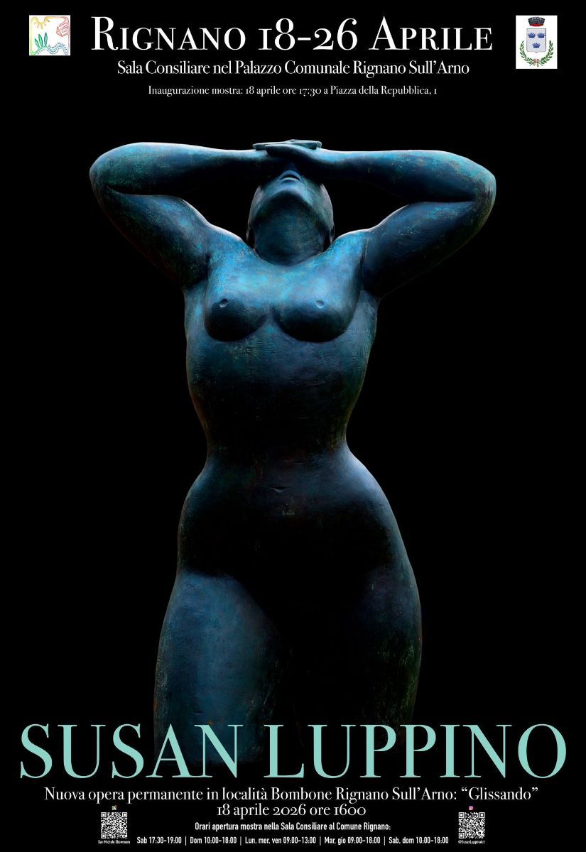 L'Inaugurazione della statua di Susan Luppino GLISSANDO 1993 avverrà alle ore 16:00 in località Bombone - Rignano Sull'Arno a seguire l'Inaugurazione della mostra personale alle ore 17:30 nella Sala del Consiliare del Palazzo Comunale, piazza della Repubblica, 1 - Rignano Sull'Arno